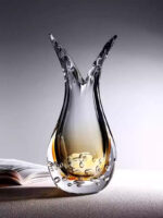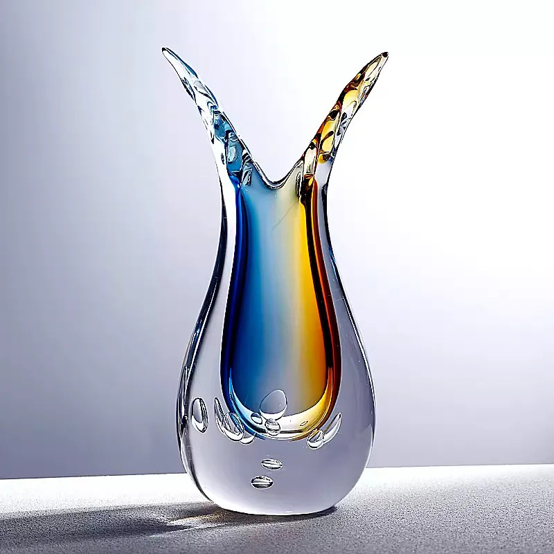 Bình thủy tinh đuôi cá nghệ thuật HL9761 là tác phẩm trang trí mang đậm dấu ấn thủ công, kết hợp giữa sắc trong suốt tinh khiết và hiệu ứng chuyển màu đầy cuốn hút. Thiết kế lấy cảm hứng từ dáng đuôi cá uyển chuyển, tạo nên sự mềm mại, thanh thoát và giàu tính thẩm mỹ – như khoảnh khắc chuyển động của đại dương được “đông cứng” lại trong chất liệu thủy tinh.