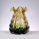 Điểm cuốn hút của sản phẩm nằm ở miệng bình rộng mềm mại và các đường vân uốn lượn xuyên suốt thân bình, tạo cảm giác chuyển động nhẹ nhàng, thanh lịch. Màu sắc ombre độc đáo chuyển dần từ xanh lá dịu mắt sang vàng hổ phách ấm áp, mang lại hiệu ứng thị giác ấn tượng và đầy nghệ thuật. Khi ánh sáng xuyên qua thân bình, các lớp màu giao thoa tạo nên hiệu ứng khúc xạ lung linh, tôn lên độ trong suốt và vẻ đẹp cao cấp của thủy tinh.
