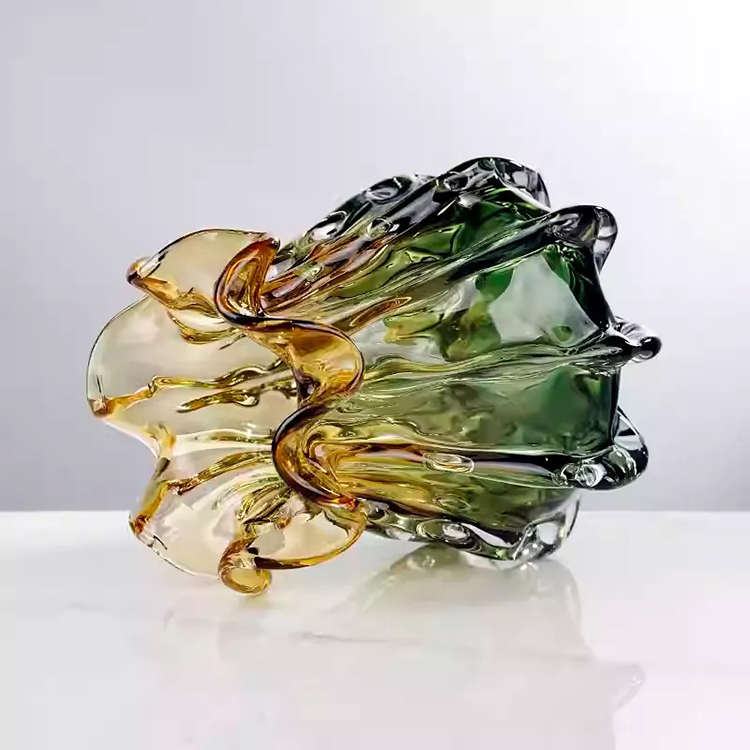 Bề mặt bình hoa sở hữu hoa văn tinh xảo, được tạo ra từ kỹ thuật thổi thủ công lành nghề. Mỗi sản phẩm đều mang dấu ấn riêng biệt, thể hiện sự tỉ mỉ và giá trị sưu tầm của đồ thủy tinh nghệ thuật.