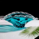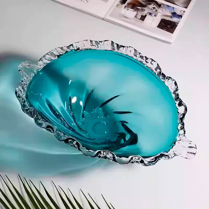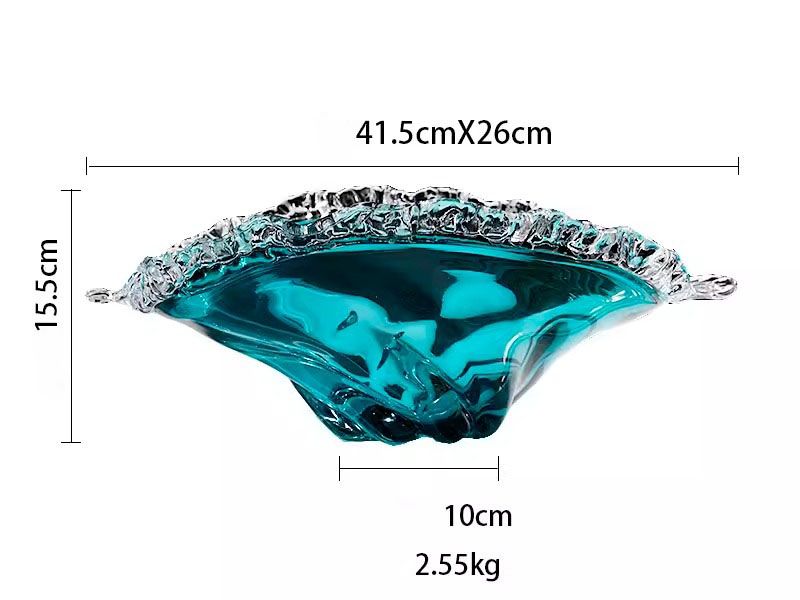 Đĩa trái cây thủy tinh Ocean Crystal HL9466 là tác phẩm decor mang đậm cảm hứng từ đại dương xanh ngọc, nổi bật với sắc xanh trong suốt đầy chiều sâu và hiệu ứng ánh sáng lung linh như mặt nước biển. Thiết kế dáng uốn lượn mềm mại, lòng đĩa xoáy nhẹ tựa dòng hải lưu, kết hợp viền gợn sóng trong suốt được tạo hình thủ công, mang lại cảm giác sống động và giàu tính nghệ thuật.