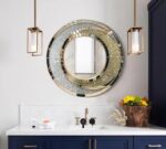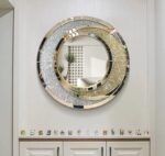 Hai dải màu vàng kim và bạc ánh gương được khảm tinh xảo, ôm lấy trung tâm gương như quỹ đạo của ánh sáng xoay quanh điểm tĩnh lặng, vừa mềm mại, vừa quyến rũ. Mỗi góc nhìn, mỗi tia sáng phản chiếu đều tạo nên hiệu ứng lấp lánh diệu kỳ, khiến không gian mang đậm hơi thở xa hoa nhưng vẫn giữ được nét thanh nhã và cân đối.