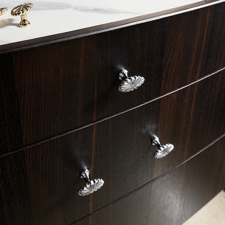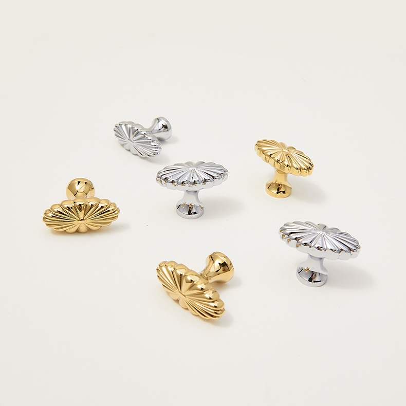 Núm tay nắm tủ đồng phong cách châu Âu KPA284 gây ấn tượng với thiết kế dáng oval thanh lịch, bề mặt tạo vân tỏa đều như cánh hoa cổ điển, mang đậm hơi thở tân cổ điển châu Âu sang trọng và tinh tế. Sản phẩm được chế tác từ đồng cao cấp, kết cấu chắc chắn, bền bỉ, kết hợp lớp hoàn thiện màu vàng ánh kim hoặc bạc sáng giúp tăng chiều sâu thẩm mỹ, chống oxy hóa và dễ dàng vệ sinh. Các đường vân được gia công tinh xảo, tạo hiệu ứng ánh sáng đẹp mắt khi nhìn ở nhiều góc độ.