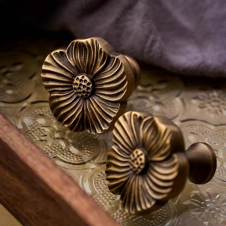 Núm tay nắm tủ đồng HTGTS02 mang đậm dấu ấn vintage với thiết kế hoa nổi tinh xảo, tạo nên vẻ đẹp mềm mại và đầy chiều sâu cho không gian nội thất. Lấy cảm hứng từ hoa cách điệu cổ điển, từng cánh hoa được chạm khắc tỉ mỉ, kết hợp cùng gam màu đồng cổ trầm ấm, mang lại cảm giác sang trọng và hoài niệm.