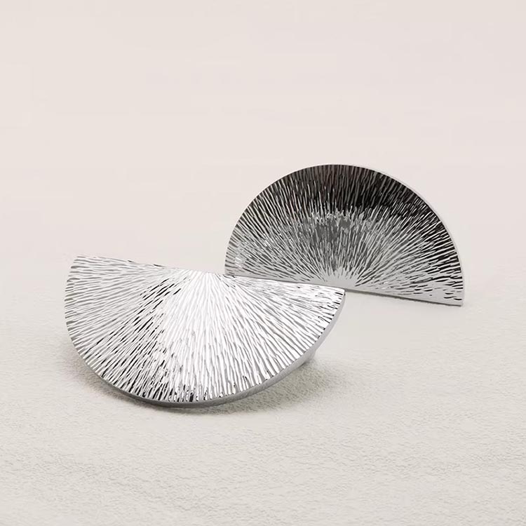 Tay nắm tủ OVLI96 gây ấn tượng với thiết kế bán nguyệt tinh tế, kết hợp họa tiết vân ánh sáng tỏa đều như tia nắng, mang lại hiệu ứng thị giác nổi bật và đầy nghệ thuật. Kiểu dáng mềm mại nhưng hiện đại giúp sản phẩm dễ dàng trở thành điểm nhấn sang trọng cho cánh tủ, ngăn kéo hay không gian nội thất cao cấp.