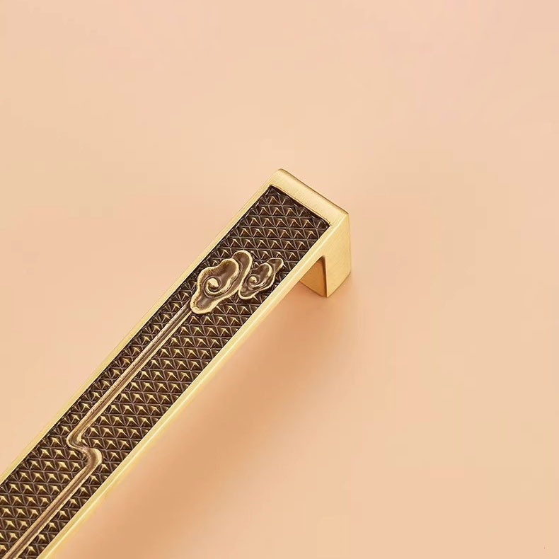 Tay nắm tủ đồng cổ điển Á Đông họa tiết vân mây RG248 là mẫu phụ kiện nội thất mang đậm hơi thở truyền thống phương Đông, kết hợp tinh tế với phong cách thiết kế cổ điển sang trọng. Họa tiết vân mây uốn lượn mềm mại được chạm khắc nổi bật trên nền bề mặt dập vân tinh xảo, không chỉ tạo điểm nhấn thẩm mỹ mà còn mang ý nghĩa cát tường – hanh thông – thịnh vượng theo quan niệm phong thủy Á Đông.