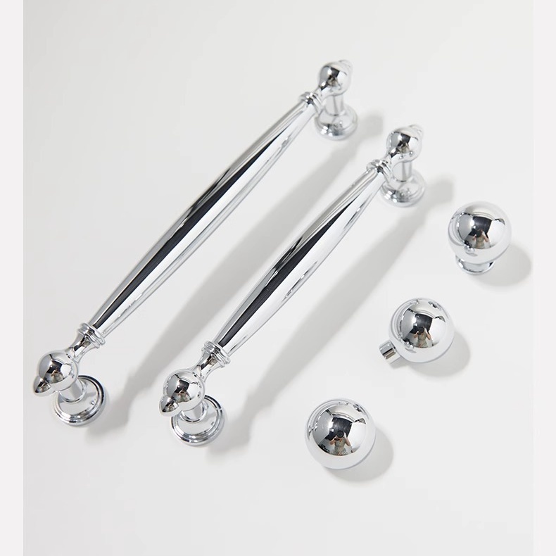 Tay nắm tủ đồng màu bạc sang trọng KPA490 mang đậm tinh thần thiết kế châu Âu cổ điển, nổi bật với phom dáng thon dài thanh lịch và các chi tiết bo tròn cân đối ở hai đầu. Bề mặt hoàn thiện màu bạc bóng tạo hiệu ứng phản chiếu ánh sáng tinh tế, mang lại cảm giác sáng sủa, sạch sẽ và sang trọng cho không gian nội thất. Thiết kế chuẩn mực, hài hòa giúp tay nắm dễ dàng kết hợp với nhiều kiểu cánh tủ, từ cổ điển đến tân cổ điển.