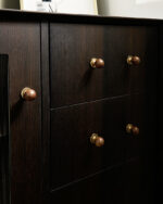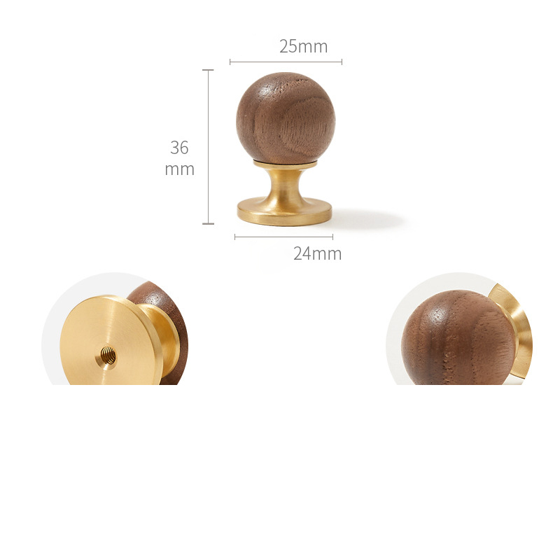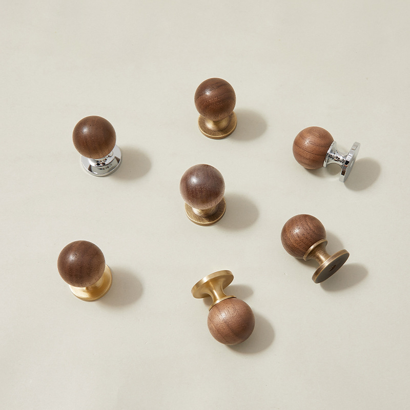 Tay nắm tủ đồng phối gỗ óc chó Bắc Âu KPA70 mang vẻ đẹp hài hòa giữa chất liệu tự nhiên và kim loại cao cấp, đúng tinh thần Scandinavian ấm áp và tinh giản. Phần tay nắm tròn được làm từ gỗ óc chó tự nhiên, nổi bật với vân gỗ mịn, màu nâu trầm sang trọng, mang lại cảm giác thân thiện và dễ chịu khi sử dụng. Phần đế bằng đồng hoàn thiện tinh xảo giúp tổng thể trở nên chắc chắn, cân đối và giàu tính thẩm mỹ.