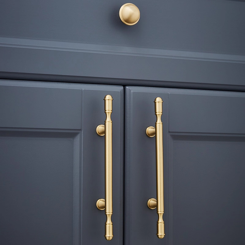 Tay nắm tủ đồng phong cách châu Âu KPA742 mang vẻ đẹp thanh lịch và tinh tế, lấy cảm hứng từ thiết kế nội thất châu Âu cổ điển pha hiện đại. Kiểu dáng thanh trụ tròn cân đối, các đầu bo mềm mại tạo cảm giác chắc tay khi sử dụng, đồng thời giúp tổng thể cánh tủ trở nên sang trọng và hài hòa hơn.