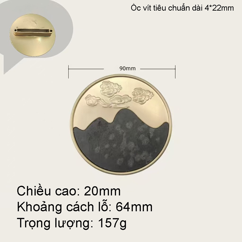 Tay nắm tủ đồng thau Sơn Vân Cát Tường JC245 mang vẻ đẹp hài hòa của nghệ thuật sơn thủy Á Đông, tái hiện hình ảnh núi non trùng điệp kết hợp cùng mây lành mềm mại, biểu trưng cho cát khí, bình an và may mắn trong không gian sống. Thiết kế mặt tròn cân đối tạo cảm giác viên mãn, vừa là chi tiết công năng vừa như một điểm nhấn trang trí tinh tế trên hệ tủ nội thất.