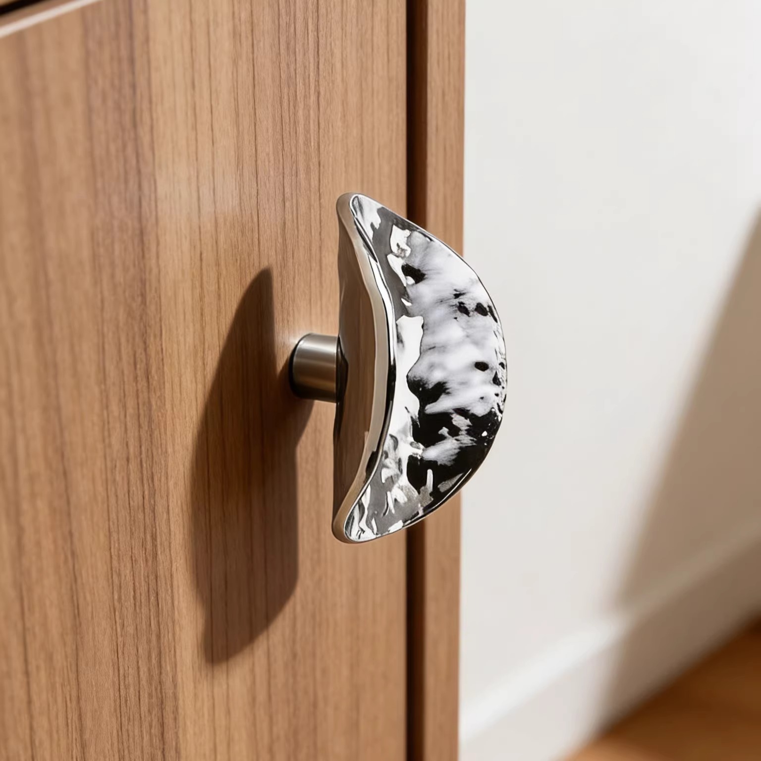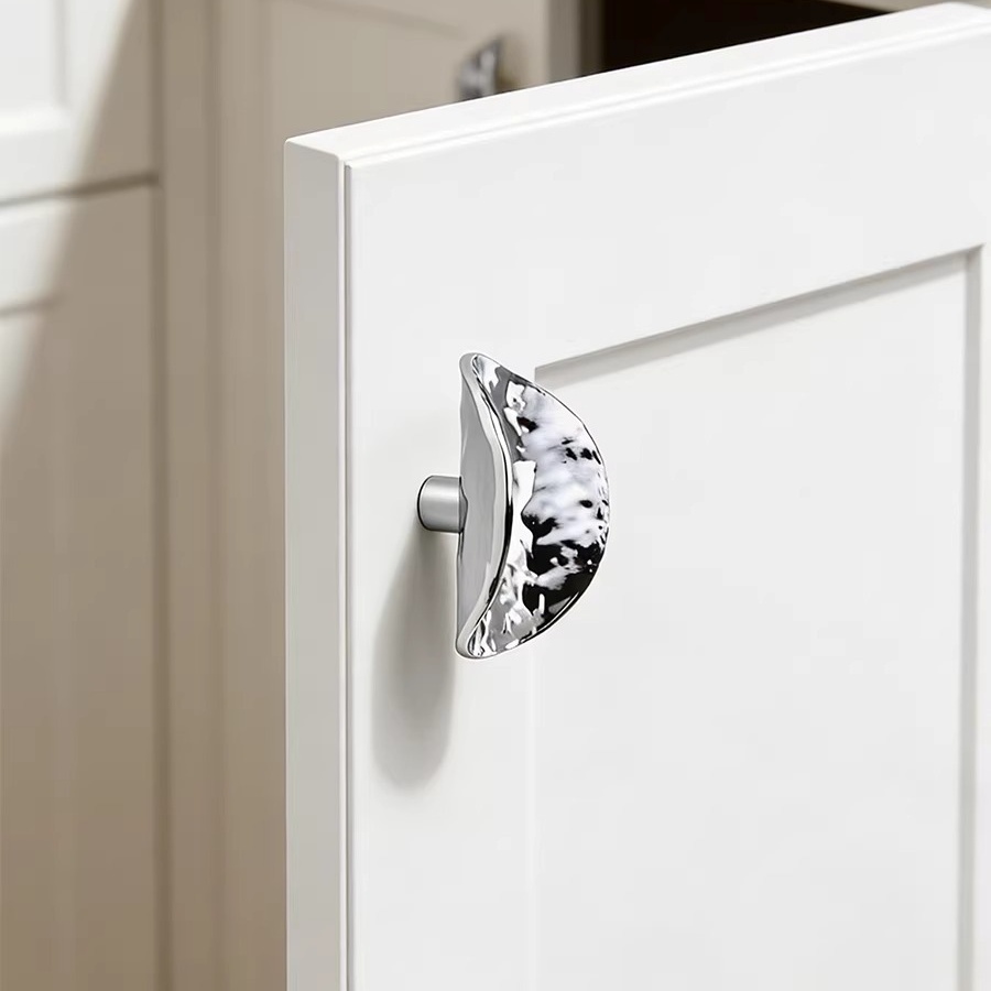 Tay nắm tủ hợp kim hiện đại sáng tạo KHYD855 là mẫu tay nắm decor độc đáo, mang phong cách nghệ thuật và hiện đại cho không gian nội thất. Thiết kế dạng bán nguyệt mềm mại với bề mặt kim loại sáng bóng tạo hiệu ứng phản chiếu tinh tế, giúp cánh tủ trở nên nổi bật và sang trọng hơn.